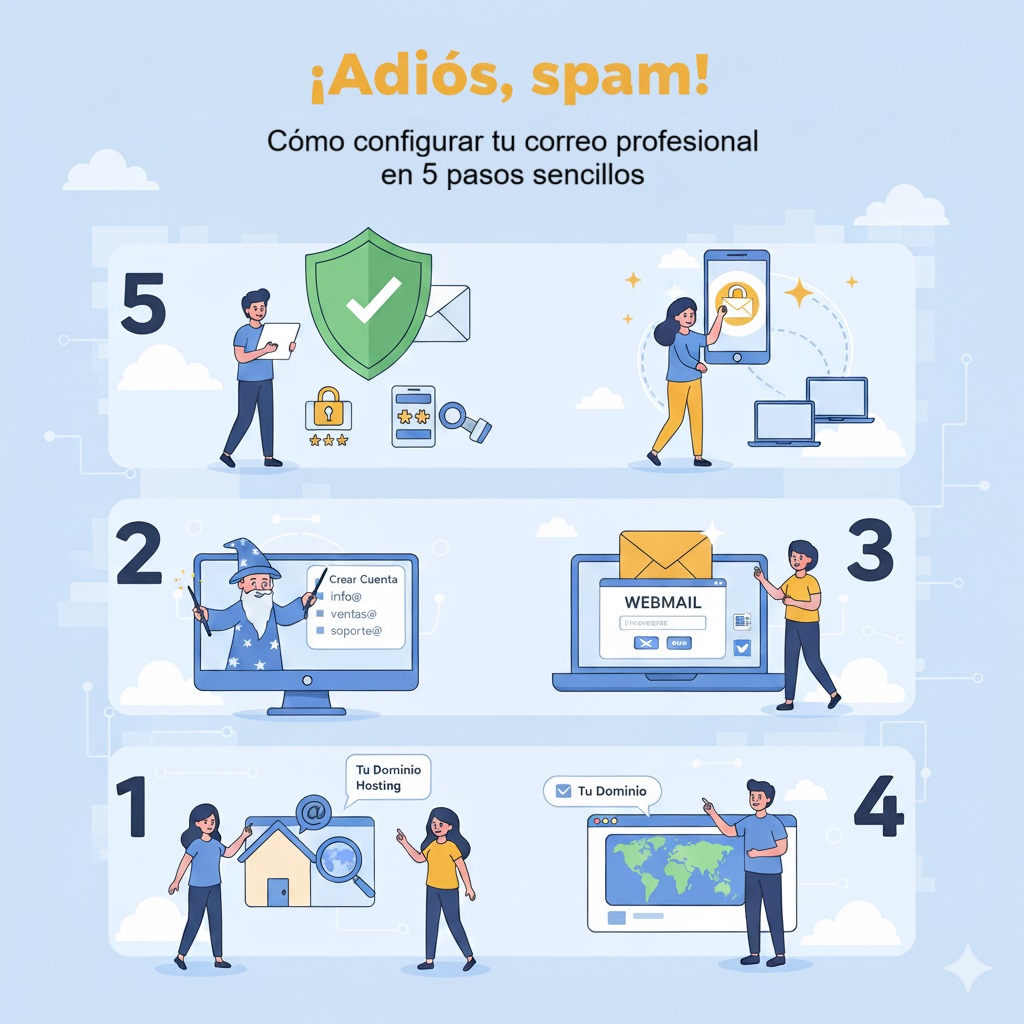 Configurar tu correo profesional es un paso relativamente pequeño que genera un impacto gigantesco en la percepción de tu negocio. Dejas de ser un aficionado para convertirte en un profesional en toda regla. Mejora tu imagen de marca, tu credibilidad y te ayuda a establecer una comunicación eficiente y segura.